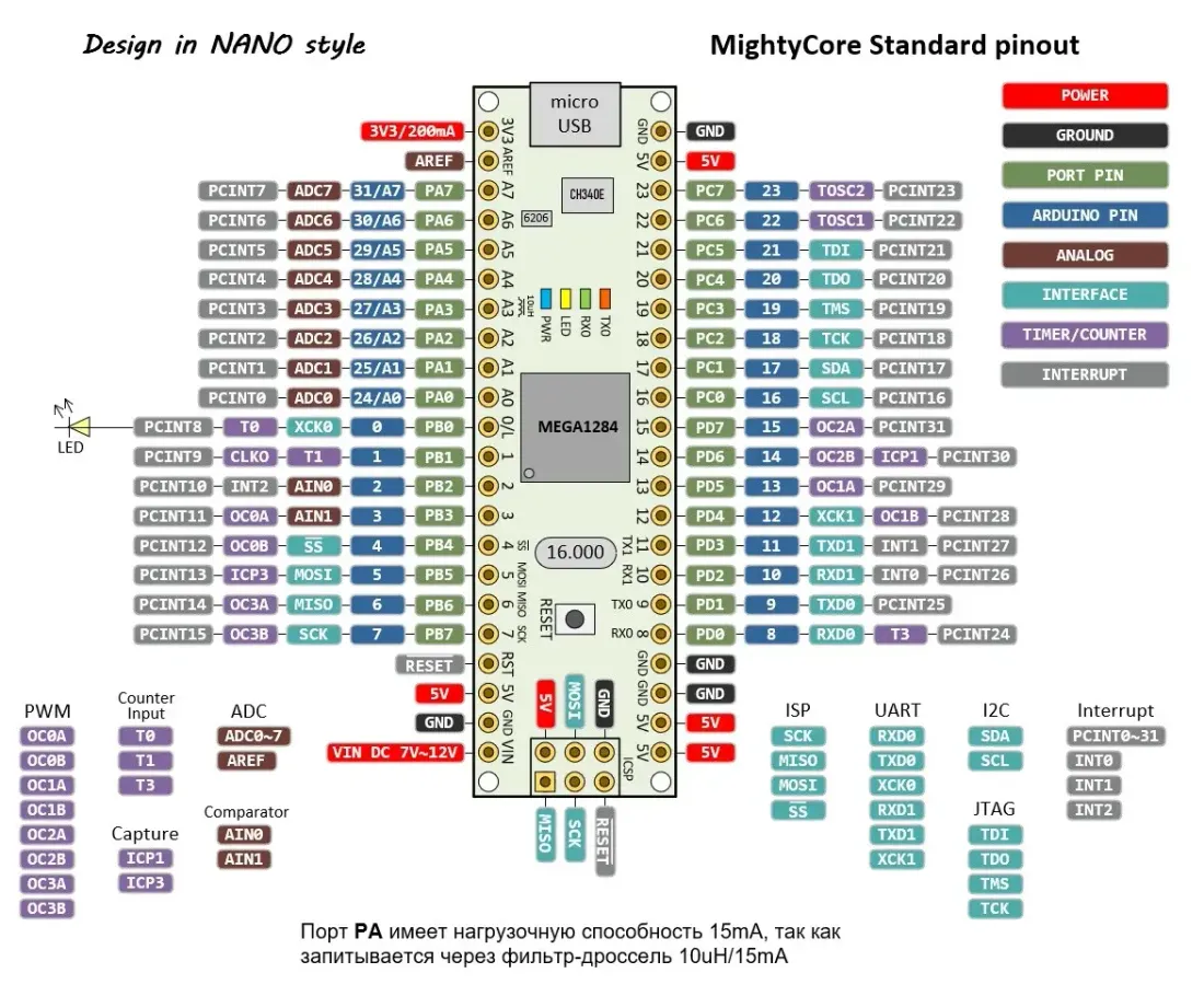Отладочная плата Arduino NANO M1284 на ATmega1284P