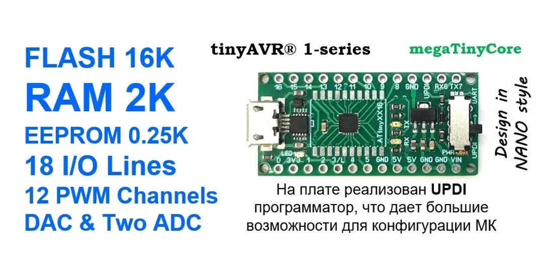 Отладочная плата Arduino NANO T1616 на ATtiny1616 (НОВАЯ ГЕНЕРАЦИЯ tinyAVR® 1-series)