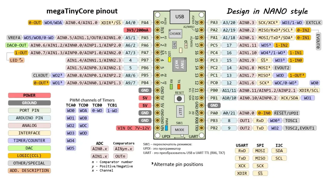 Отладочная плата Arduino NANO T3217 на ATtiny3217 (НОВАЯ ГЕНЕРАЦИЯ tinyAVR® 1-series)